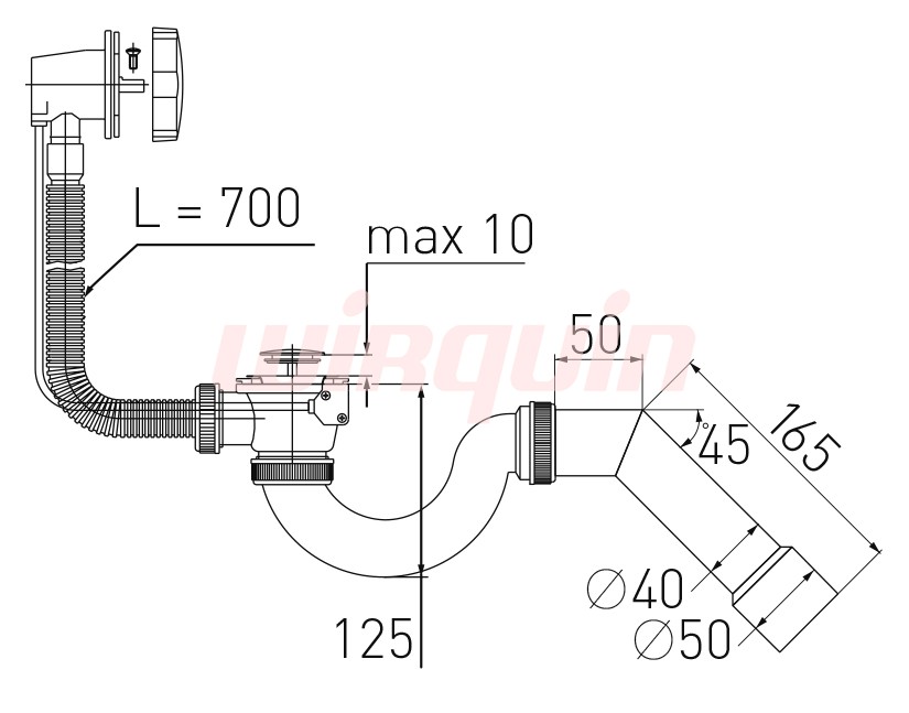 | Гофрированный перелив | 700 мм |